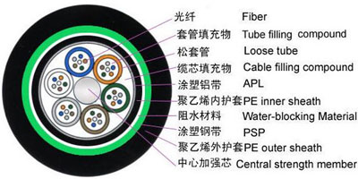 松套管結構,涂塑鋁帶縱包后擠制一層聚乙烯護套