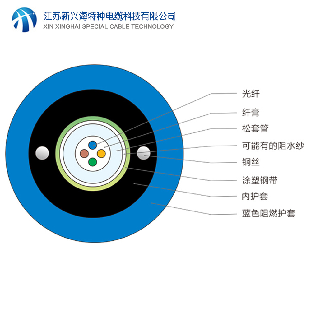 中心管式煤礦用阻燃光纜 MGXTSV礦用光纜產品描述 MGXTSV光纜的結構是講250μm光纖套入高模量材料制成的松套管中,松套管內填充防水化合物。松套管外用一層雙面涂塑鋼帶(PSP)縱包,鋼帶和楹套管之間加阻水材料以保證光纜的緊湊和縱向阻水,兩側放置兩根平行鋼絲后擠置阻燃護套成纜。適用:管道、架空、直埋。