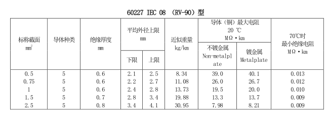 內(nèi)部布線用導(dǎo)體溫度為90℃的單芯軟導(dǎo)體無(wú)護(hù)套電纜