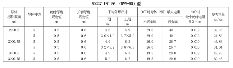 導體溫度90℃的耐熱輕型聚氯乙烯護套軟線